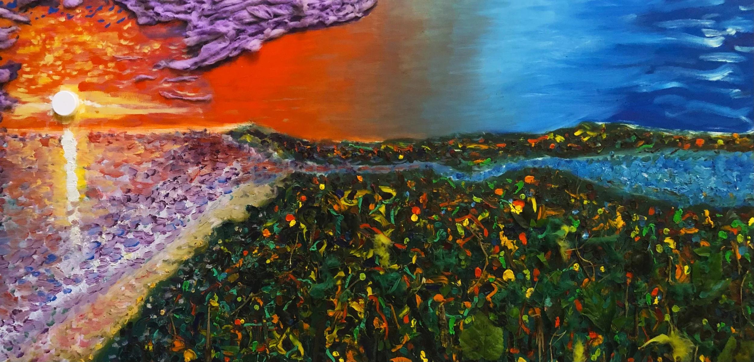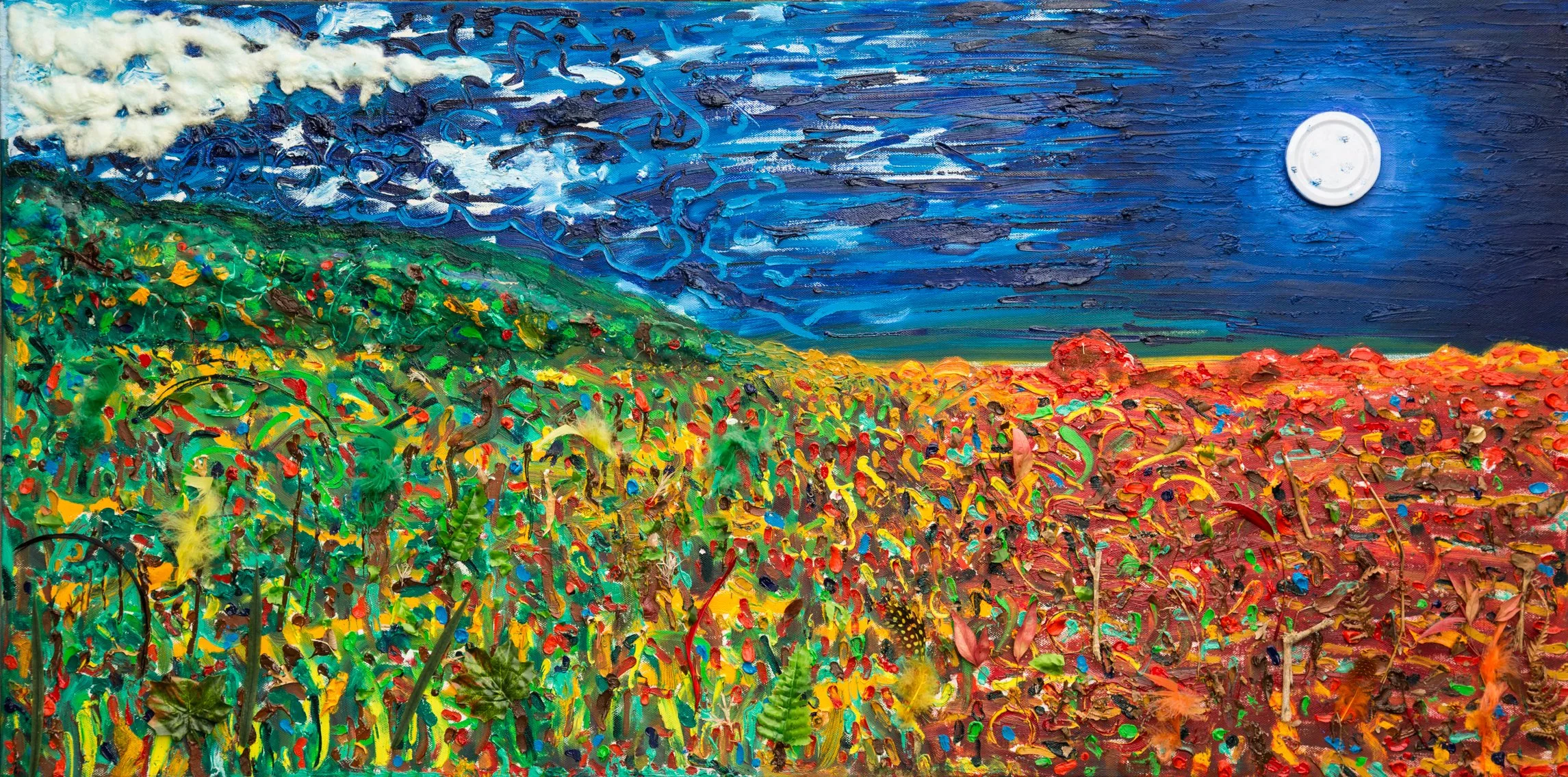 Ocean to Jungle, assemblage, mixed media and oil 120cm x 70cm, 2017